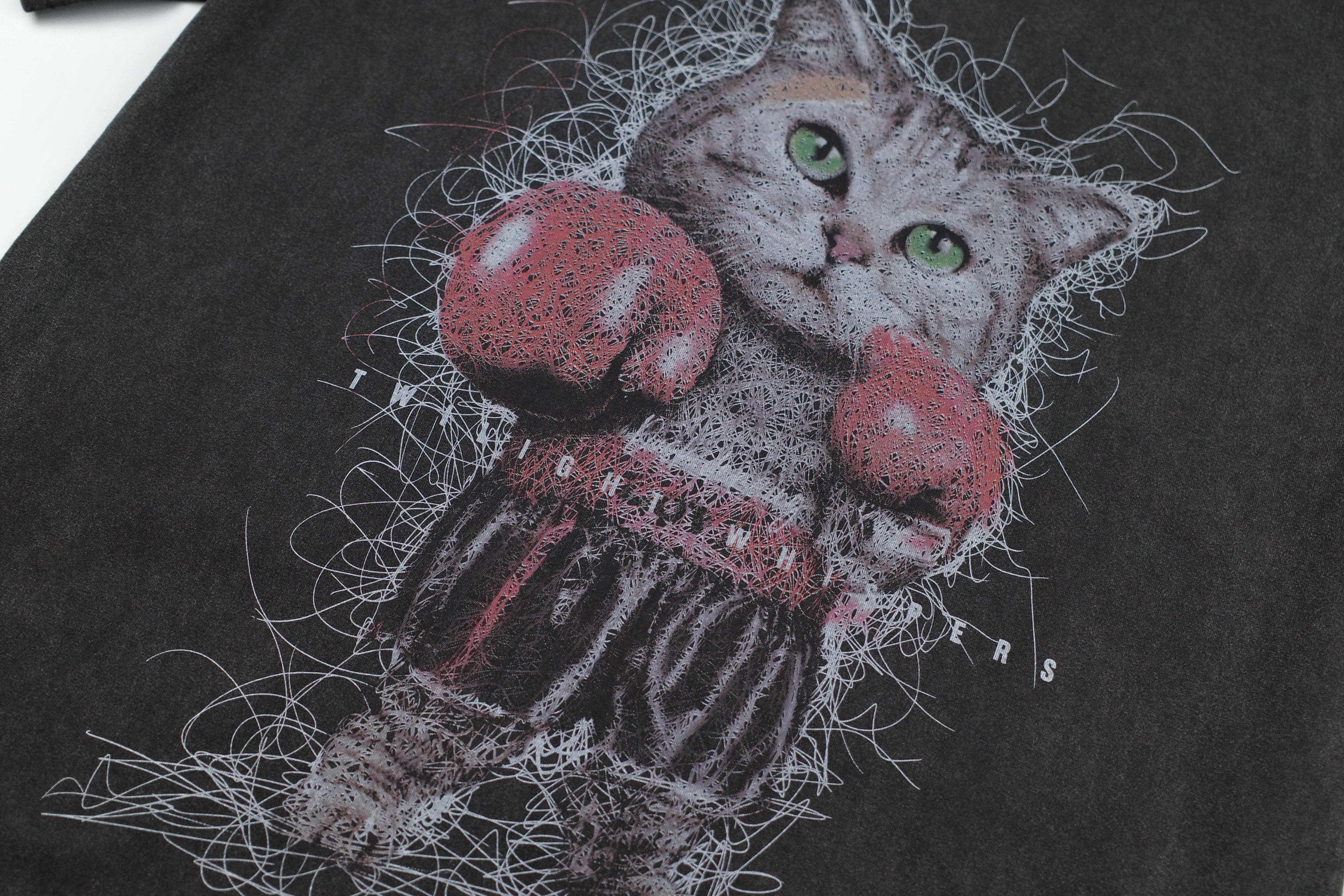 『Always_Good』拳擊貓咪 水洗 印花 短T