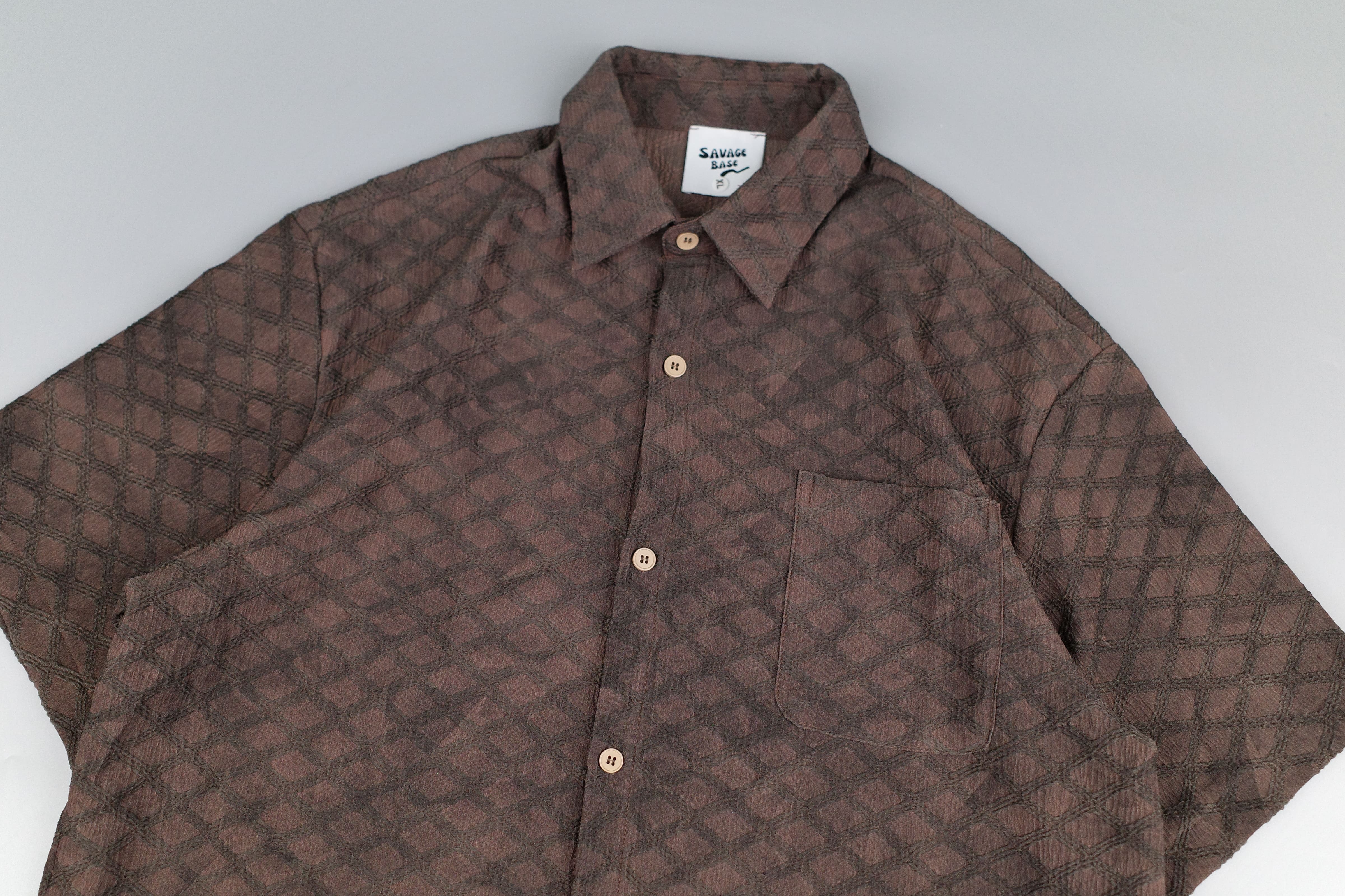 『Always_Good』復古 菱格紋 提花 抗皺 短袖襯衫