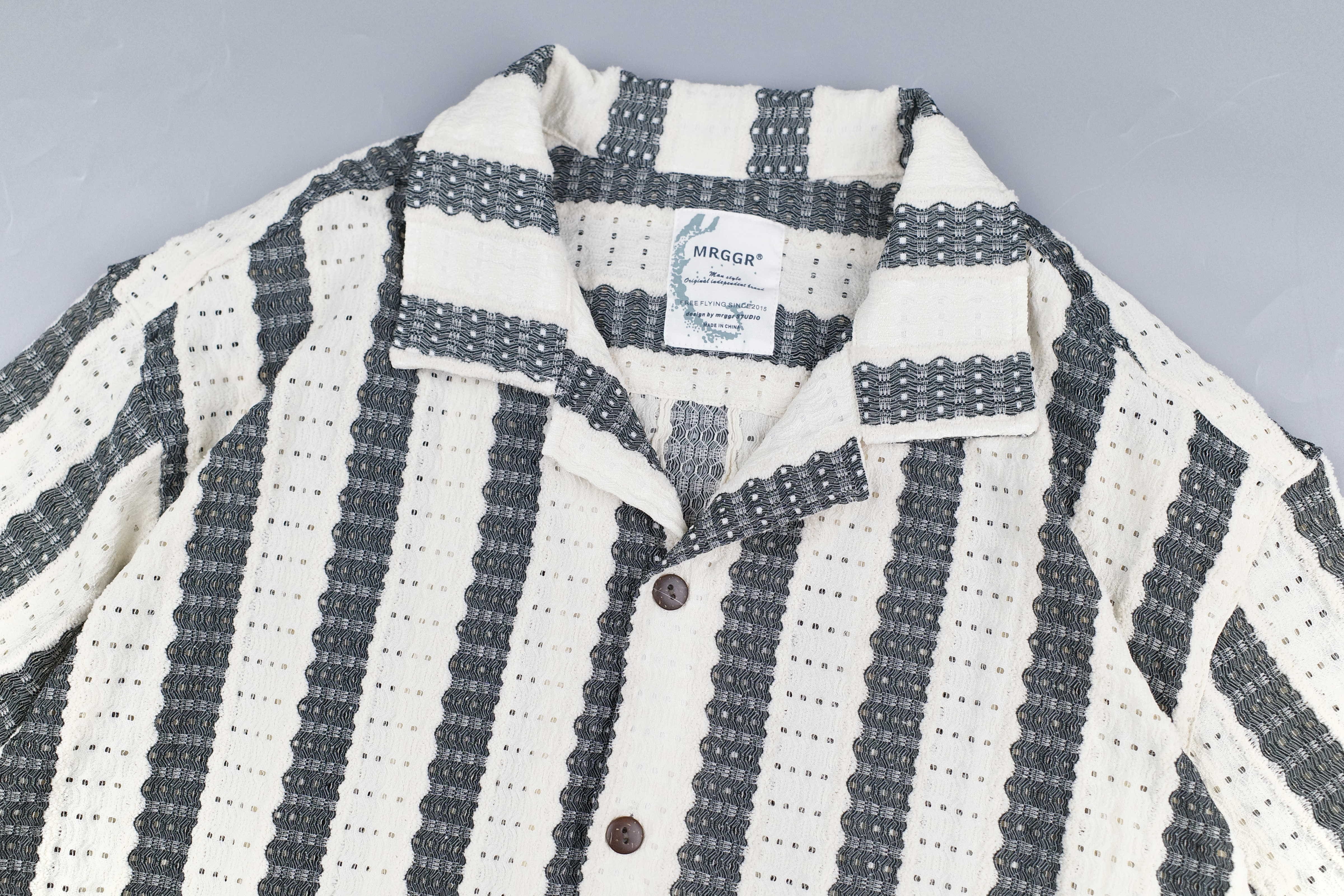 『Always_Good』日系 縷空 透氣 針織 條紋 短袖襯衫