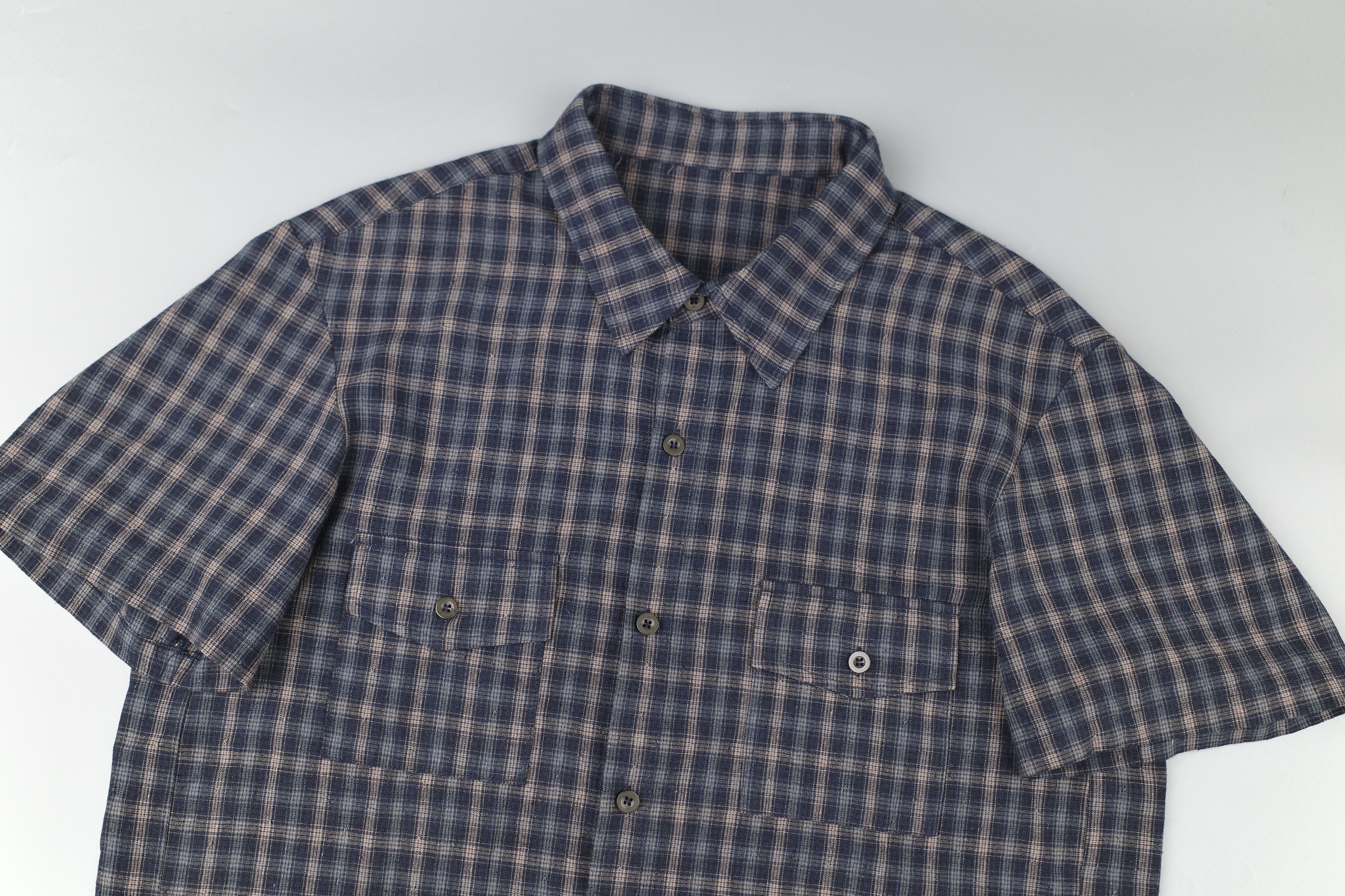 『Always_Good』雙口袋 做舊 短版 格紋 短袖 襯衫