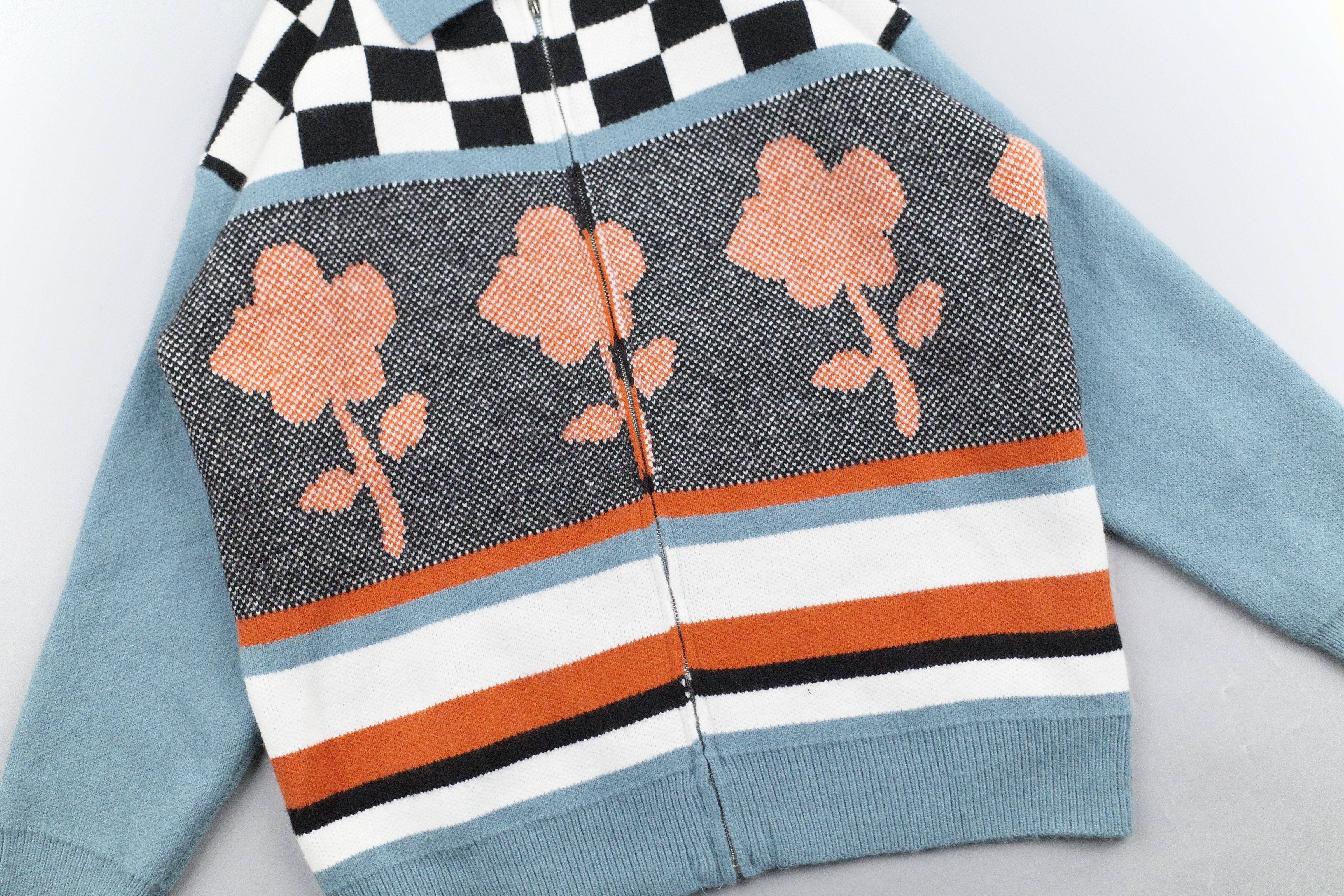『Always_Good』花朵 撞色 翻領 開襟 針織 外套