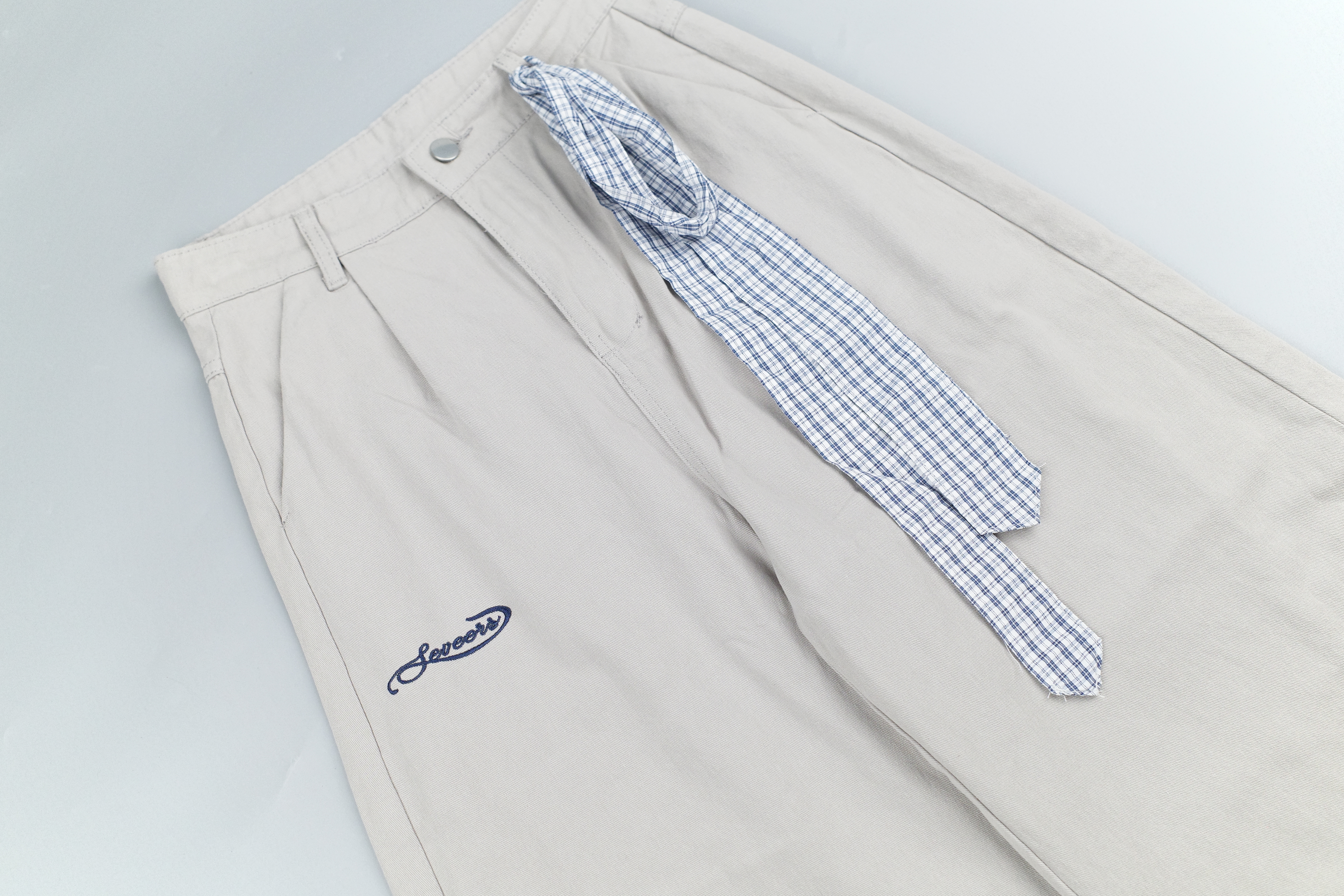 『Always_Good』格紋綁帶 刺繡 工裝 長褲