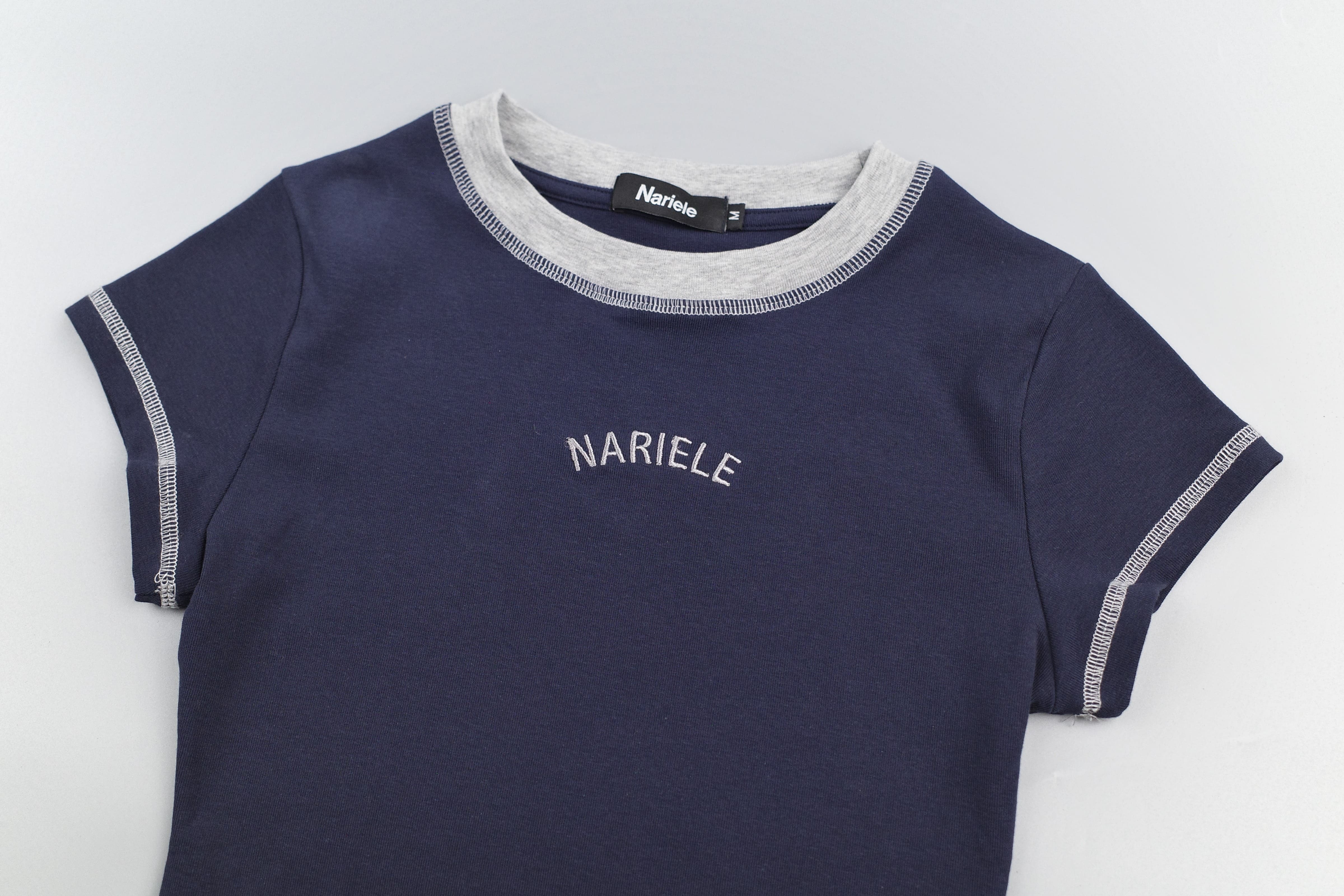 『Always_Good』撞色領 刺繡 顯瘦 上衣